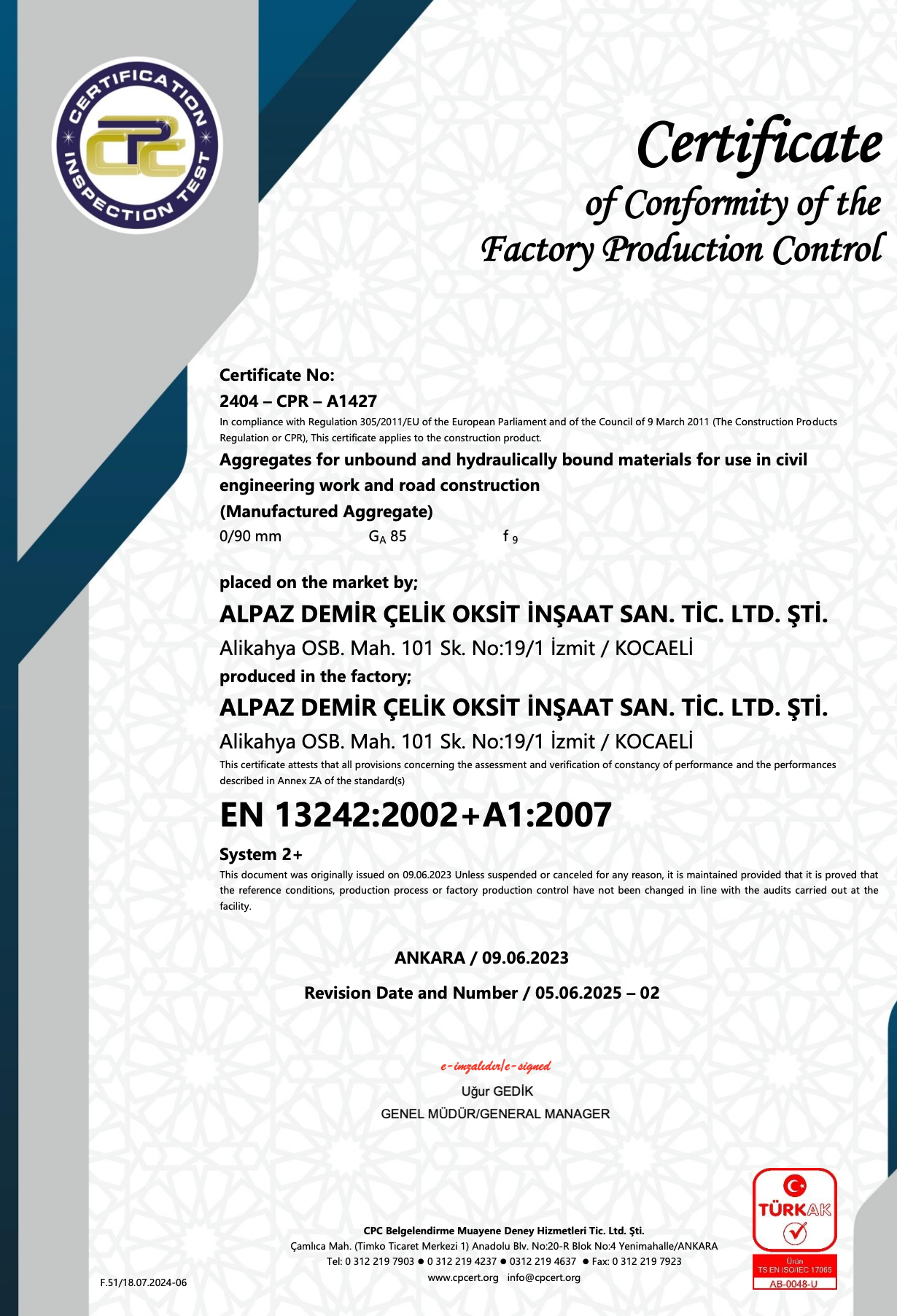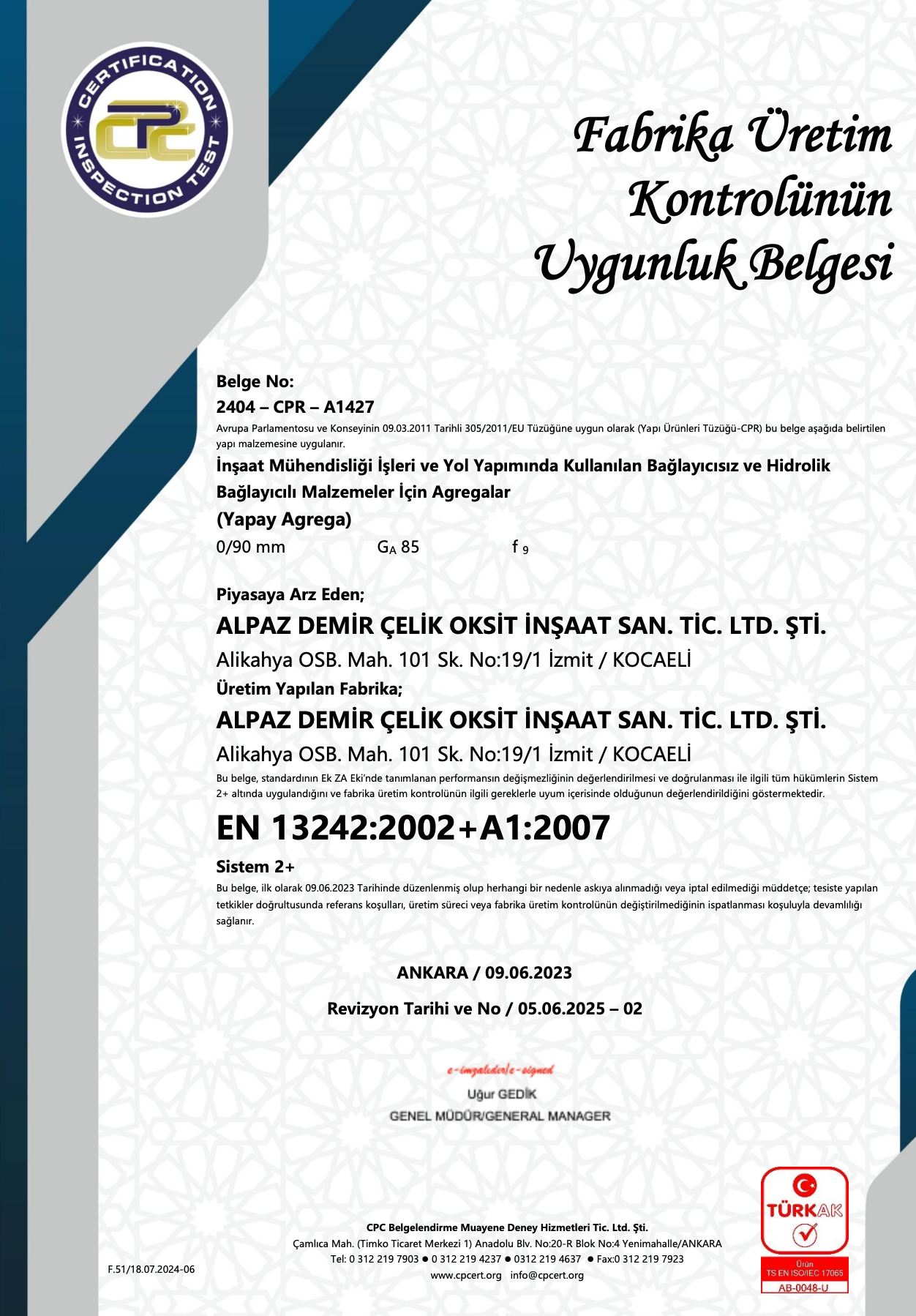 13242 FUK UYGUNLUK BELGESİ TR