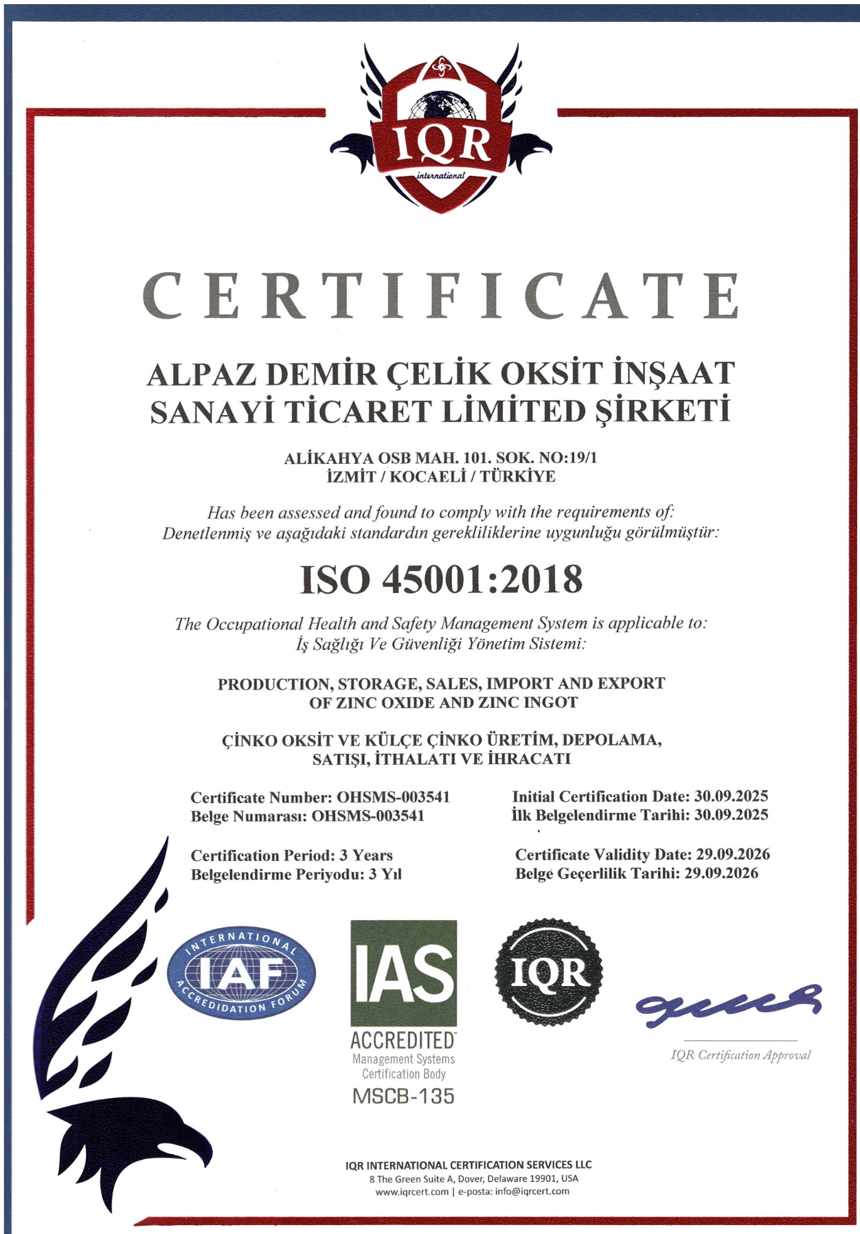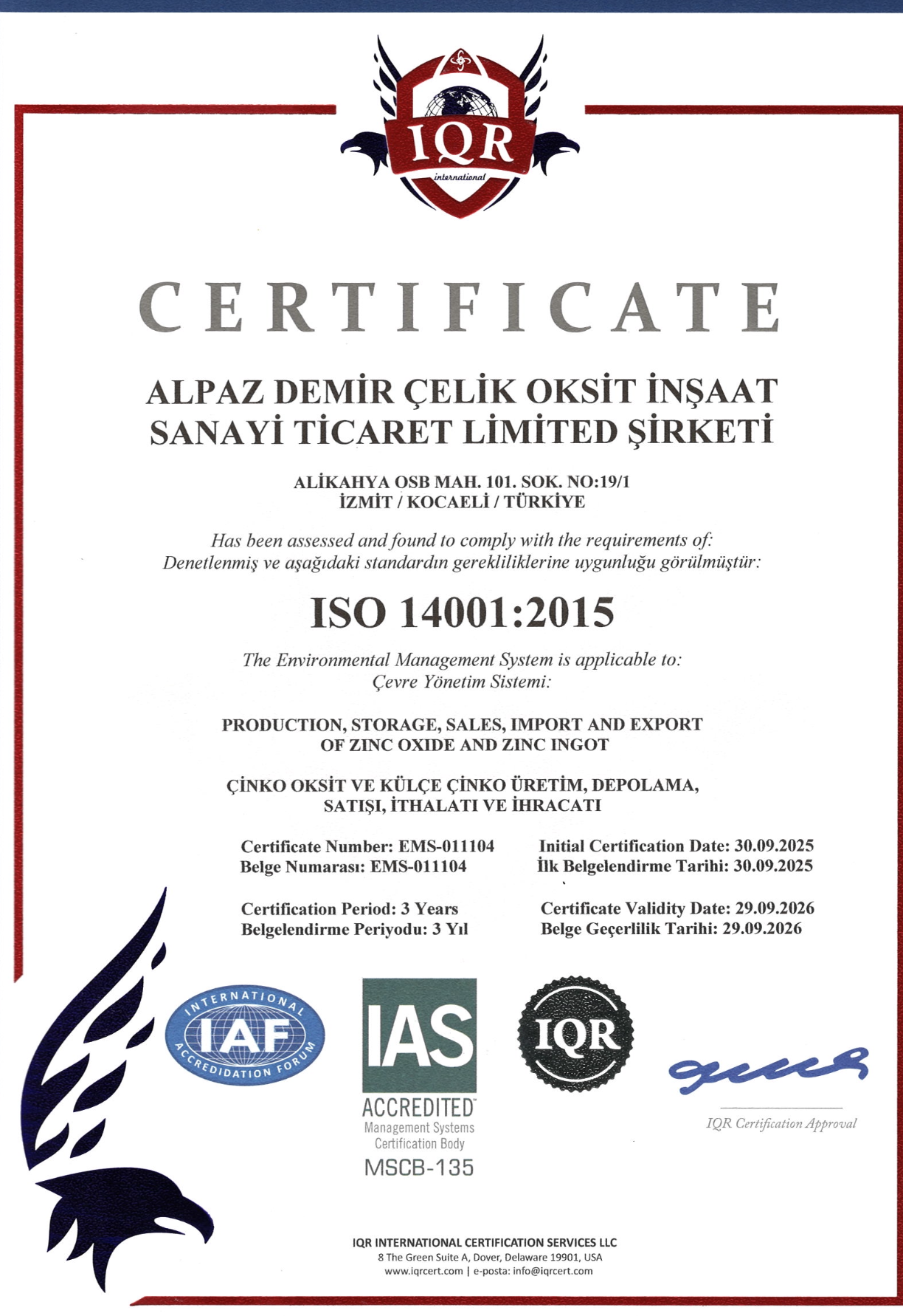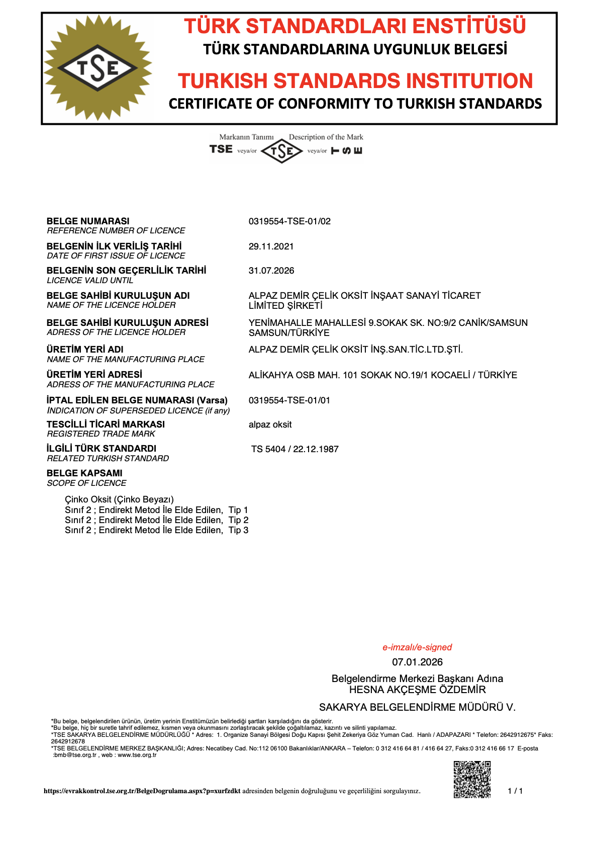 Sertifikalarımız